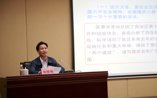 在講解到深刻領(lǐng)會(huì)、準(zhǔn)確把握黨代會(huì)精神時(shí),朱堅(jiān)和從七個(gè)方面講解了大會(huì)的重要精神和目標(biāo)任務(wù)。其中,著重講解了今后五年全區(qū)發(fā)展的總體要求和奮斗目標(biāo),即營(yíng)造“三大生態(tài)”、實(shí)現(xiàn)“兩個(gè)建成”。